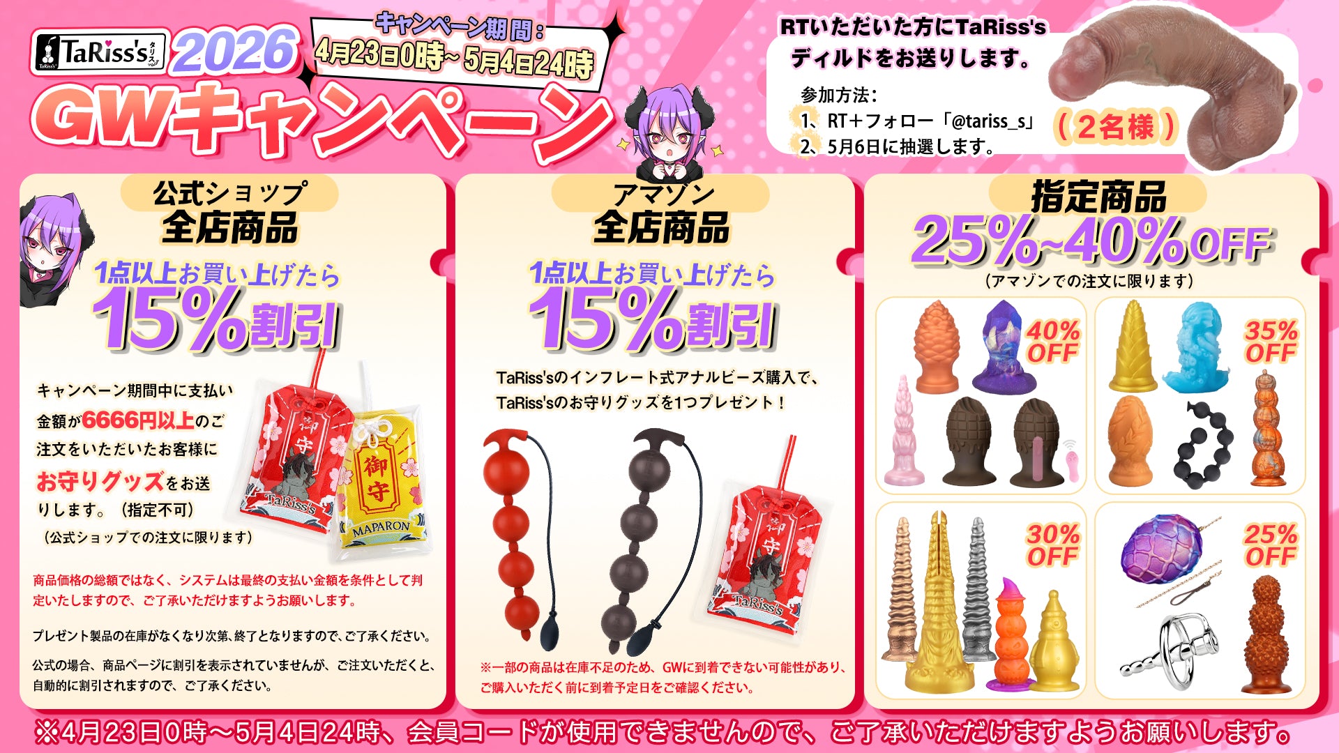 TaRiss'sは2015年に設立され、「お客様にセックスの楽しさと最高な快感が体験させる」という理念を貫いて、様々なニーズに満足できる商品を提供するよう日々頑張っております。