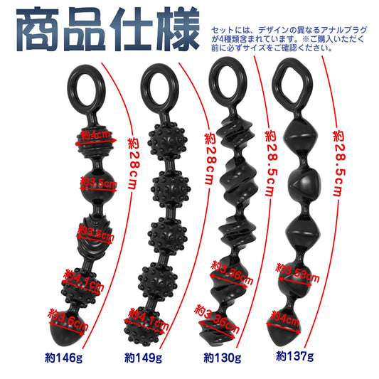 MinYn アナルビーズ 持ち手ある 四点セット 初心者向け TPE