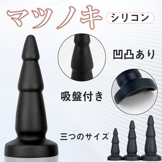 MAPARON マツノキ アナルプラグ 凹凸あり 吸盤付き シリコン ブラック