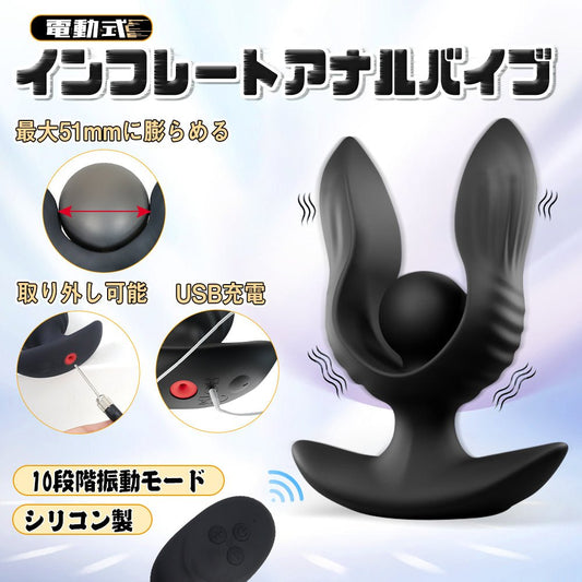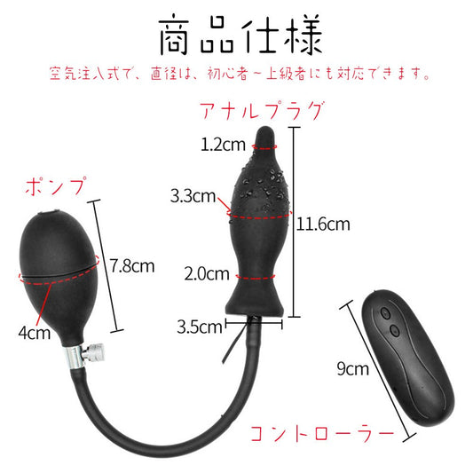 TaRiss's 電動式 インフレート式アナルプラグ アナルバイブ 振動可 10段階振動モード リモコン付き 最大51mmに膨らめる 手動 シリコン ブラック