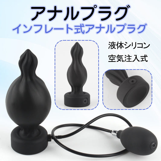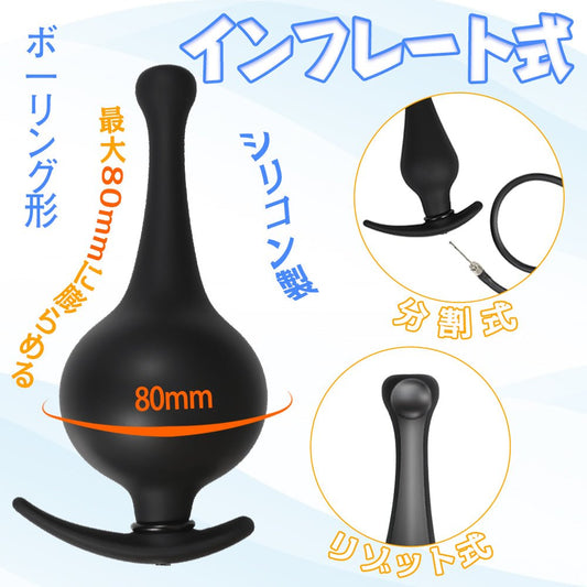 TaRiss's インフレート式アナルプラグ アナル拡張 空気注入式 手動 2ビーズ ボール内蔵 最大10cmに膨らめる 分割式 液体シリコン ブラック