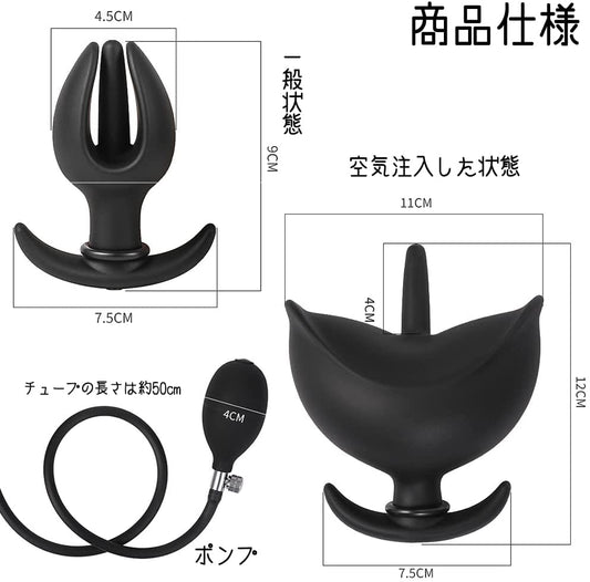 TaRiss's インフレート式アナルプラグ アナル拡張 アナル開発 最大9cmに膨らめる 分割式 シリコン ブラック