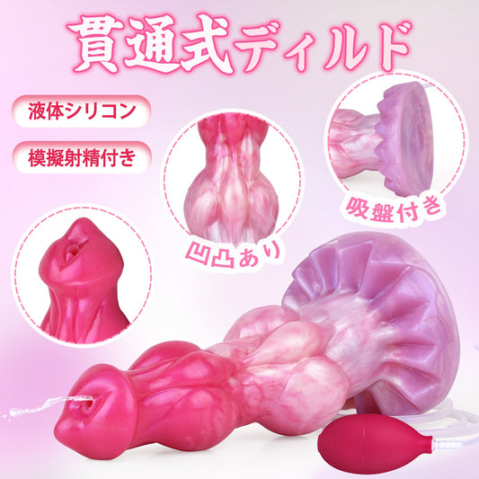 TaRiss's ディルド 貫通式ディルド 模擬射精付き 凹凸あり 吸盤付き 液体シリコン