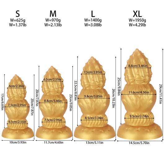 NIGHTLOOM アナルプラグ 凹凸あり 三段階刺激設計 つぼみ シリコン製 吸盤付き ゴールド 四つのサイズ
