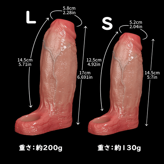 NIGHTLOOM ペニスサック 貫通式 凹凸あり リアルな血管 陰茎袖 ペニスリング 液体シリコン 二つのサイズ