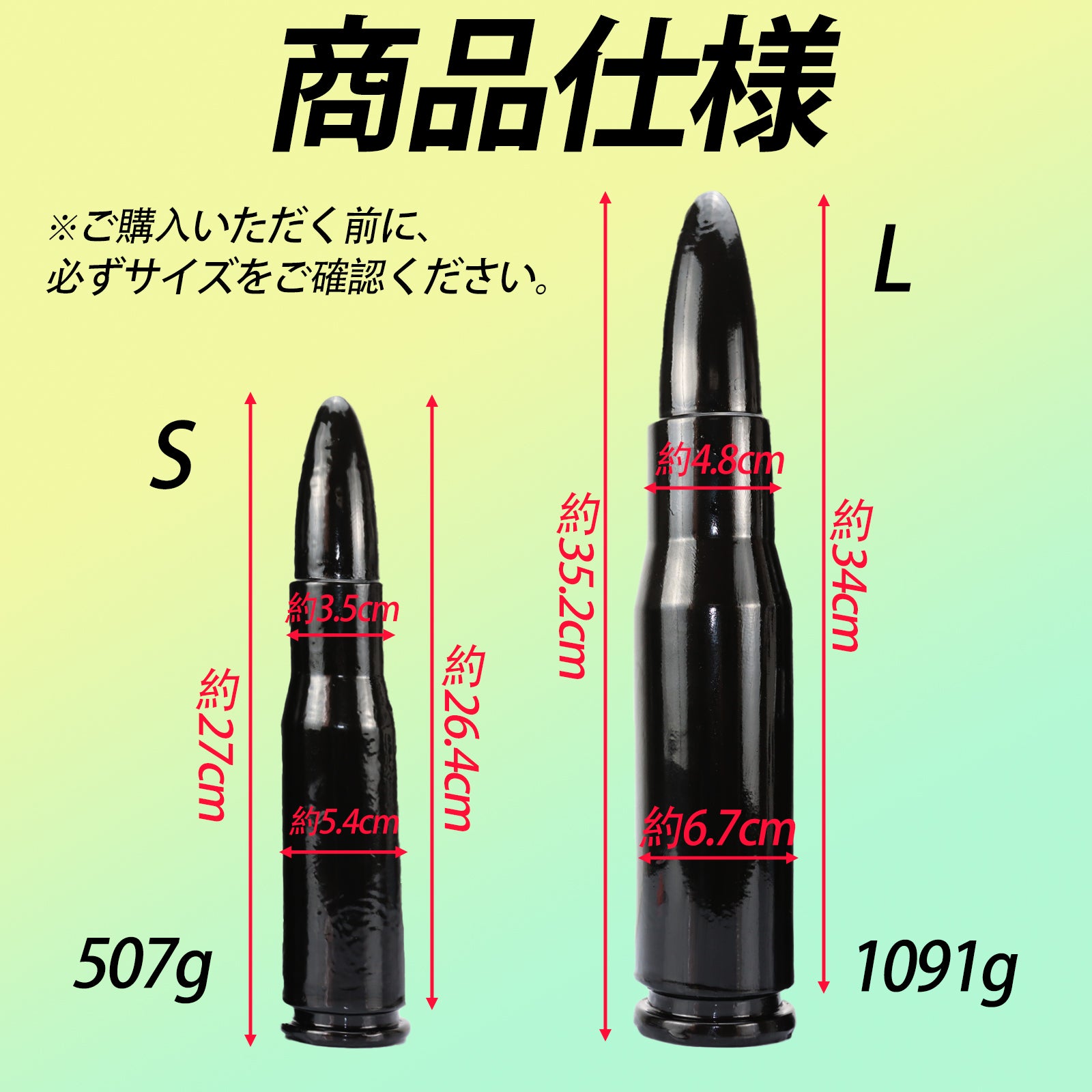 商品仕様:S:先端直径は約3.5cm、最大直径は約5.4cmで、可挿入長さは約26.4cm、全長は約27cmです。重さは約507gです。L:先端直径は約4.8cm、最大直径は約6.7cmで、可挿入長さは約34cm、全長は約35.2cmです。重さは約1091gです。※ご購入いただく前に、必ずサイズをご確認ください。