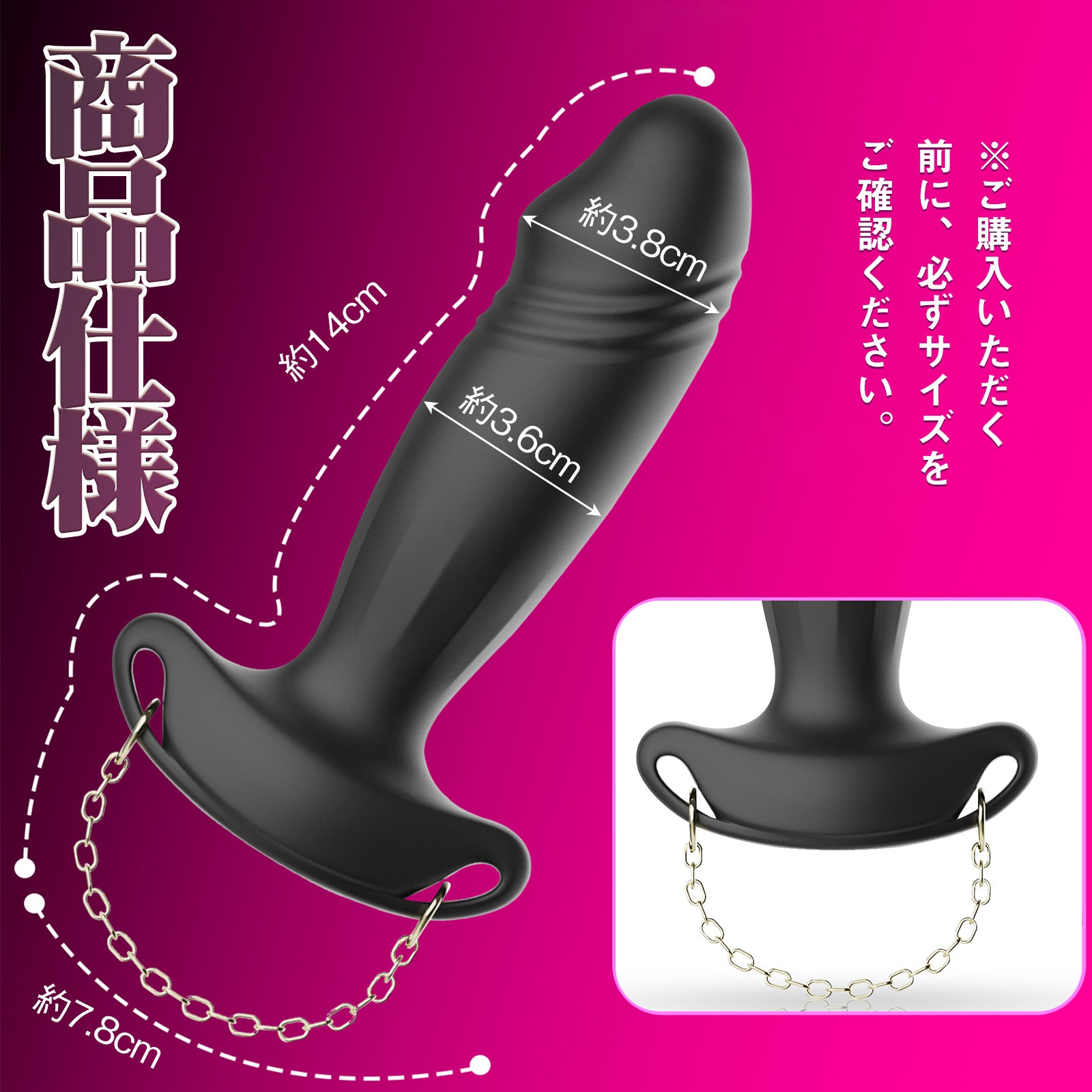 使用方法: 1、使用する前に必ず清潔してください。 2、挿入する前に、アナルとアナルバイブをたっぷりローションを塗った方がお勧めます。 3、本体にある電源ボタンを長押すと、ON/OFFにします。電源ボタンを一回押したらピストンができます。もう一度押したらモードを切り替えます。