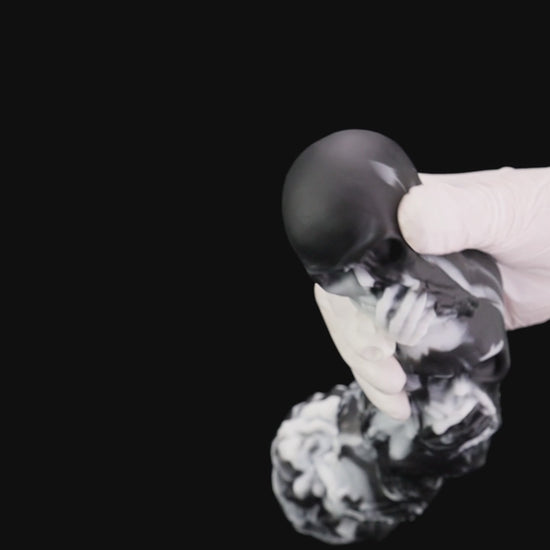 特別なデザイン:全体は日本のことわざ「見ざる聞かざる言わざる」をもとに制作した。下から順にスカルを積み重ね、一つ目は目を覆った「見ざる」、二つ目は耳を塞いだ「聞かざる」、そして上部には口を閉ざした「言わざる」を二つ配置している。先端は丸みを帯びており、初めての挿入でも抵抗感が少なく、自然と体の奥へと導かれるようになっています。直径はどんどん太くなる仕様で、穴口を繰り返して拡張されたり、収縮されたり、絶妙な快感が全身に駆け巡ります。